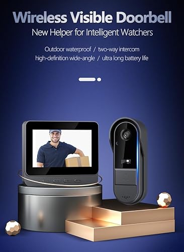Winnes Türklingel mit Kamera,1080P Drahtlose Video Türklingel,IP65 Regenfest, 4,3“ IPS Display,2.4G Bluetooth,170°-Weitwinkel-Kamera mit 800 Pixeln,Zwei-Wege-Gespräch + Nachtsicht,Türklingel Kabellos
