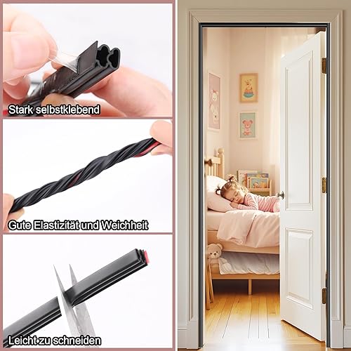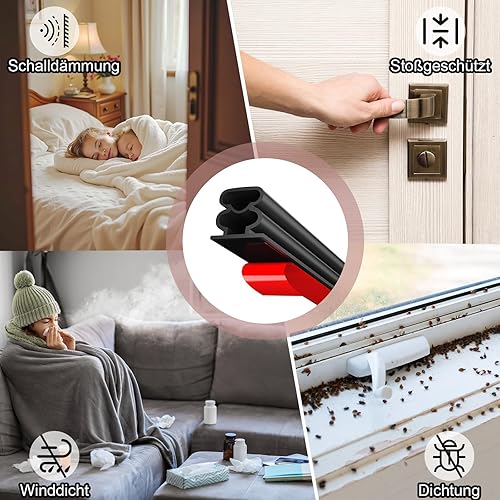 Selbstklebende Türdichtung Gummidichtung für Fenster & Türen – Zugluftstopper, Lärmschutz, Energieeffizienz, Wetterfest, Perfekt für Wohnung, Haus, Büro, Innenräume by Hzetuu