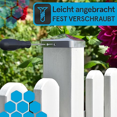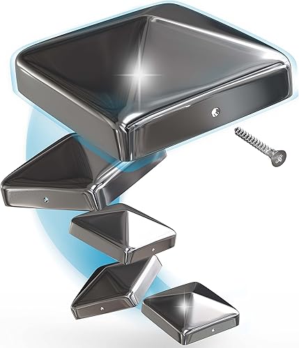 TOOLCORE® Pfostenkappen 9x9cm Edelstahl [Perfekter Schutz] 5 Stück inkl. Edelstahl Schrauben - Rostfreie Abdeckkappen für Zaunpfosten Kappen für Holzpfosten, massive Pfostenabdeckung