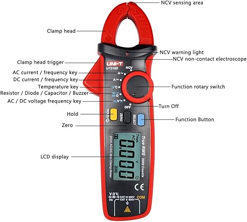 UNI-T UT210D Digitale Strommesszange AC/DC, Messgerät für Strom, Spannung, Widerstand, Kapazität.