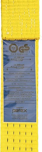 PETEX 43193519 Spanngurt ohne Ratsche 1-Teilig, 7, 6 M, 50 mm, 2500/5000 Dan, Doppelspitzhaken, Gelb