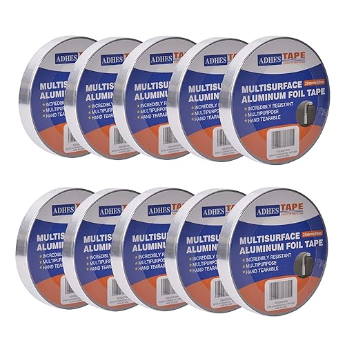 ADHES Aluminium Folienband hitzebeständiges klebeband metallklebeband silber, Hält 80 °C bis 100 °C stand, 2 Rolle 48mm (Breite) x 28m (Länge)
