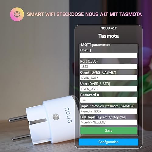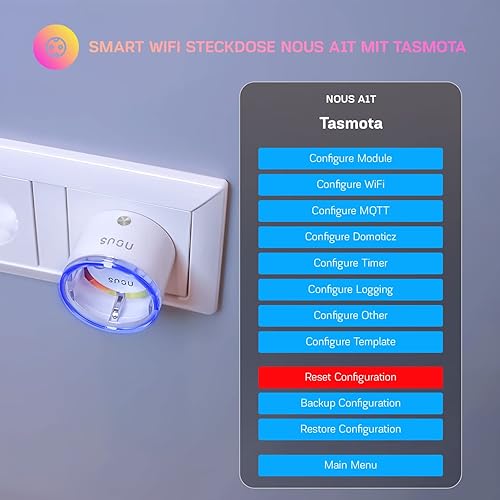 Tasmota Socket NOUS A1T, Smallest WiFi ESP8266 Smart Plug, 16A Mini WiFi Sockets with Power Consumption, Electricity Meter, Timer, Compatible with Alexa, Google Home Assistant, Domoticz, MQTT, 2.4G