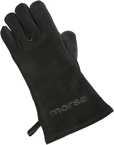 Morsø Kaminhandschuh, rechts – hitzebeständiger Ofenhandschuh aus dickem Leder, Grillhandschuh für In- und Outdoor, im cleanen Design, Schwarz
