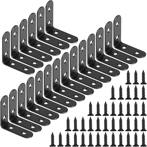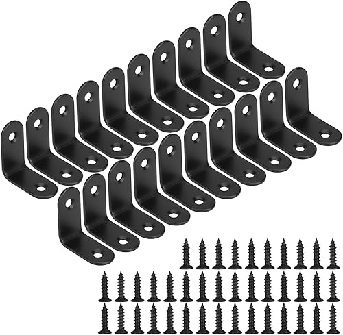 Winkelverbinder 90 Grad Winkel Klammern L-form Rechtwinkliges Edelstahl Ecke Klammer Möbel Angle Brackets mit Screws für Tabelle Stuhl Bücherregal 30*30mm Schwarz 20 Stücke