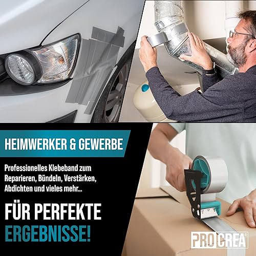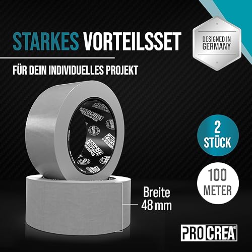 PROCREA® 2x Panzerband Silber [Hochwertiges Gewebeband Plus UV] Universelles Duct Tape & Gaffa Tape für innen & außen - Panzertape mit hoher Klebekraft, wasserfest & verstärkt - Profi-Qualität
