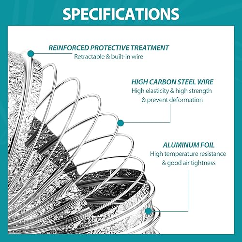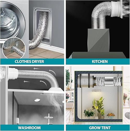 HG Power Aluflexrohr 100mm Flexible Luftleitungen Aus Aluminium Rohr Flexschlauch Luftkanal mit 2 Schlauchschellen (max. Länge 2 m)