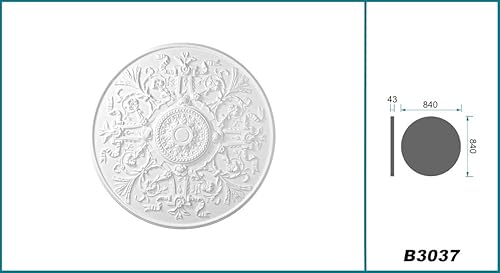 HEXIM Perfect Stuckrosette B3037, Ø 84cm - Deckenrosette weiß, aus PU/Polyurethane, Zierelement, Stuck, Wanddeko Wohnzimmer Lampe rund