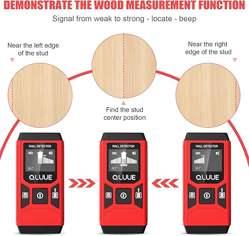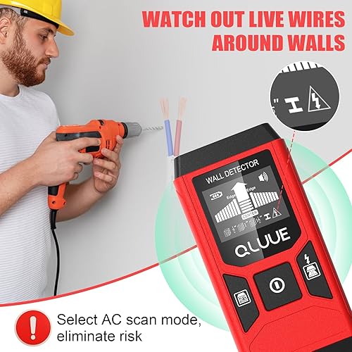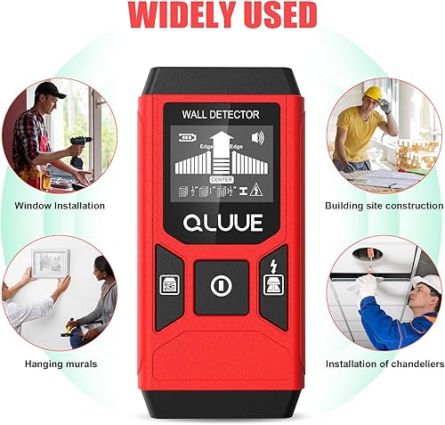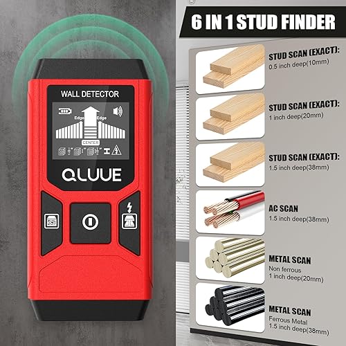 QLUUE Leitungssucher Ortungsgerät 5 in 1 Multifunktionaler Bolzendetektor mit LCD-Display und akustischem Alarm zum Auffinden von Stromleitungen, Holzbalken, Metallrohren usw