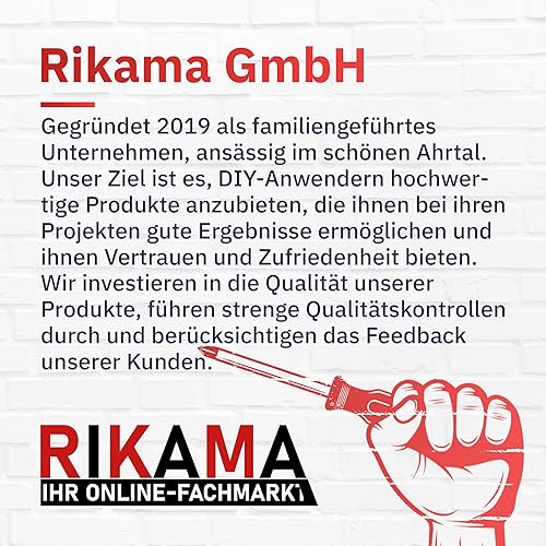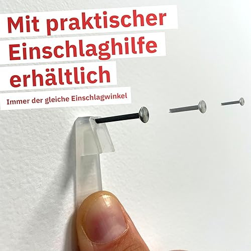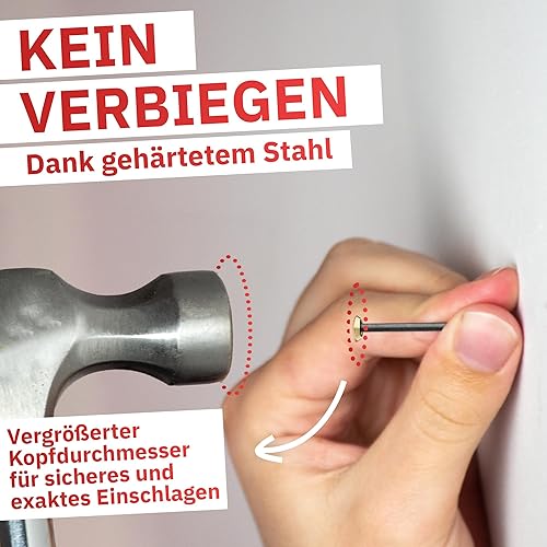 RIKAMA® – 50 Bildernägel im Mix aus je 10 x 20mm, 25mm, 30mm, 40mm, 50mm – Stahlnägel für den Einsatz auf Beton, Ziegelstein, Putz & Holz – Made in Europe (Gold mit Halter)