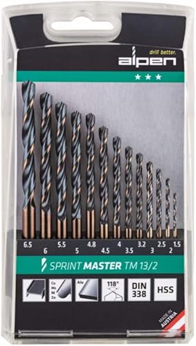 Alpen 811101100 Spiralbohrer Set 'Sprint Master' TM 13/2 13 Stück, 0 W, 0 V