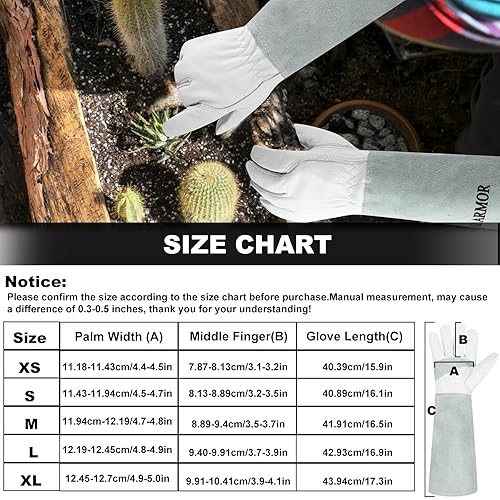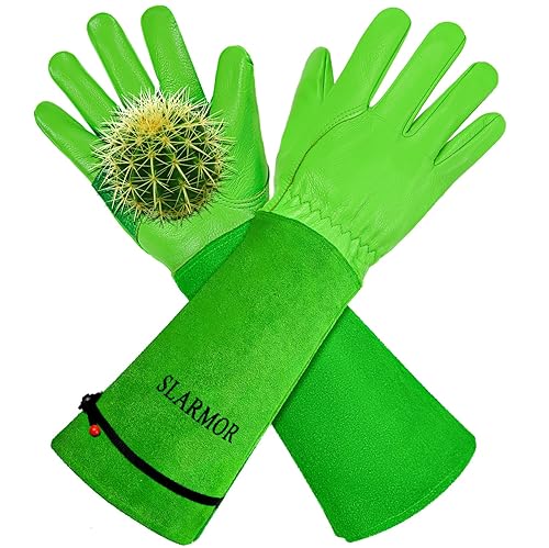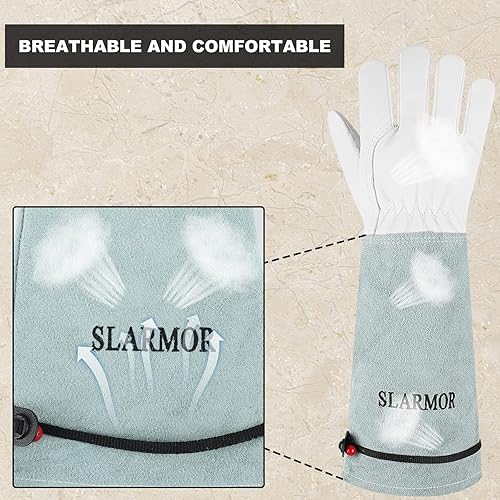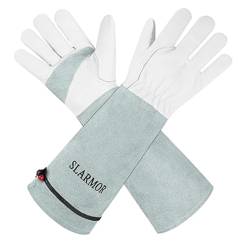SLARMOR Gartenhandschuhe aus Leder für Damen und Herren - Dornensicher zum Beschneiden von Rosen, mit Unterarmschutz, Lange Rindsleder Arbeitshandschuhe für Garten und Haushaltsaufgaben