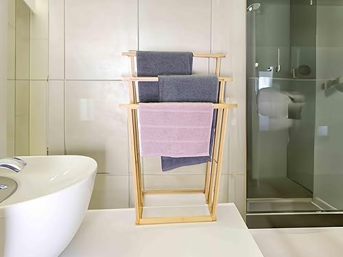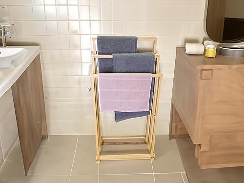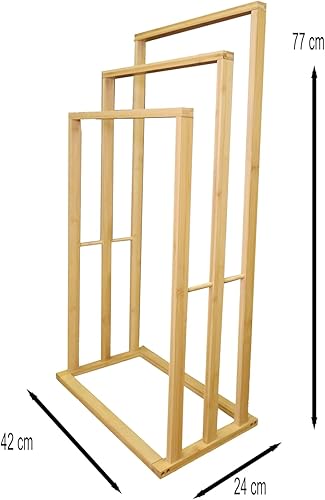 hausleben Handtuchhalter Bambus 3 Stangen | 42x24x77 cm | Natur | Bad | Holz | umweltfreundlich | Handtuchständer