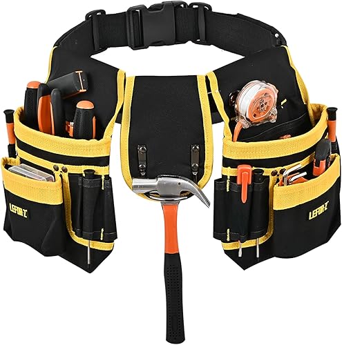 Werkzeuggürtel,Werkzeuggürtel Herren mit 26 Taschen,Robuste Handwerker Gürtel,Verstellbar und Abnehmbar Werkzeuggürtel Elektriker für Tischler,Elektriker,Klempner,Bauunternehmer