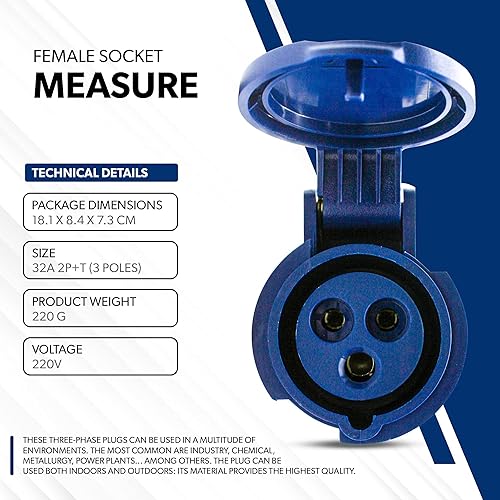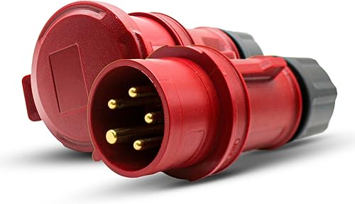 DOJA Industrial | Cee Stecker + Kupplung 380V-IP44 | 16A 3P+E (4-polig) | Dreiphasiger 4-Poliger Kabel Stecker | Schuko Steckdose + Stecker | Strom Campingstecker-Cee Adapter | Wohnwagen Zubehör