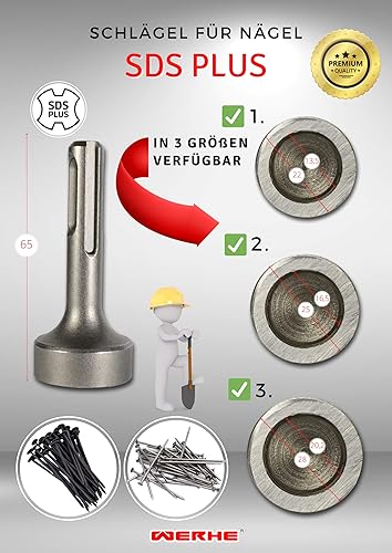 WERHE ® 16,5x25x65 Professional Nageleintreiber Jack Hammer - Nagler Driver Treiber SDS Plus
