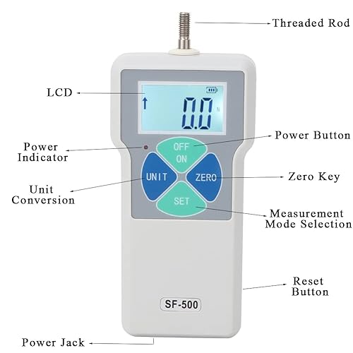 Kraftmessgerät, SF-500 LCD-Display Tragbares Push- und Pull-Messgerät Digitales Kraftmessgerät 500N 100-240V Überlastschutz(EU Plug)