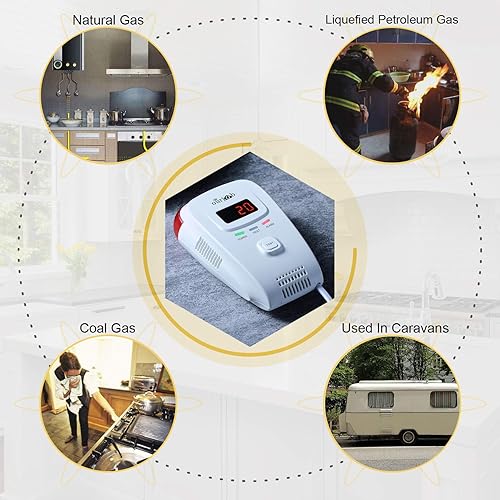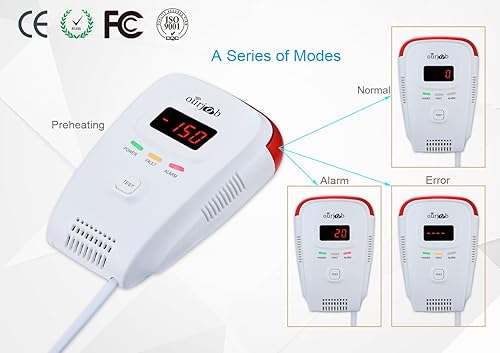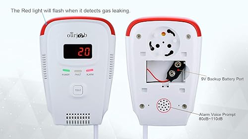 Gasmelder-Ourjob, Haushalts Erdgas Flüssiggas Stadtgas Alarme, Brennbaren Methan Propan Butan Gas Lecksucher, mit Sprachwarnung Blinklichtalarm und Digitalanzeige (Weiß, Keine Batterie)