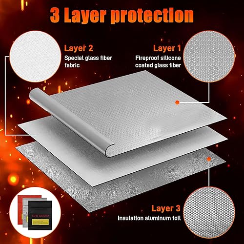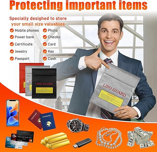 Huiguli 3 Stück Feuerfest Wasserdicht Safe Bag, Feuerfeste Akku Tasche, wasserdichte Ladetasche, Explosionsgeschützte Feuerfeste Dokumententasche für Lipo Batterie, Bargeld, Pass, Schmuck