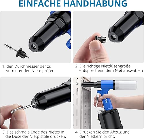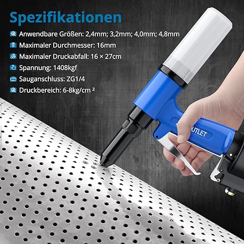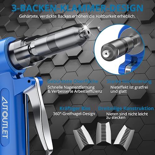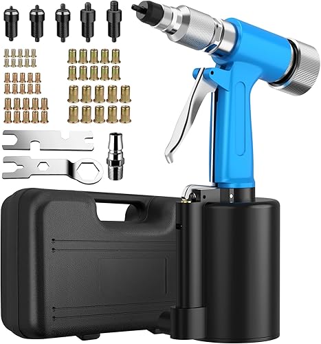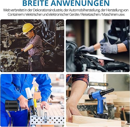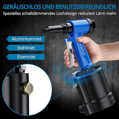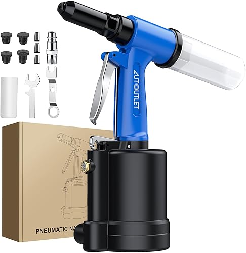 AUTOUTLET Druckluft Blindnietpistole Kit, Premium Heavy Nietpistole Werkzeug mit 4 Mundstücke 2,4mm 3,2mm 4,0mm 4,8mm, Druckluft Nietenzange Nietpistole für Aluminium-, Eisen-, Edelstahlbleche