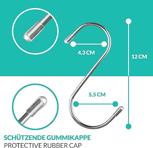 Praknu 16 S Haken Edelstahl - Belastbar bis 25kg - 12cm Groß - Rostfreie S-Haken zum Aufhängen