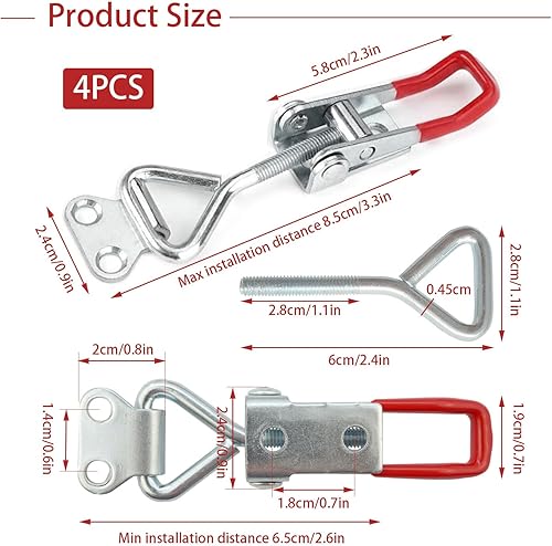 4 stück Spannverschluss, Kistenverschluss, Schnappverschluss, Knebelverschluss, Hebelverschluss, Spannverschluss Gummi klein, Button Toggle Latch 100kg, Verstellbar Metall Hebel, für Kisten Schrank