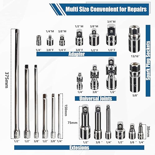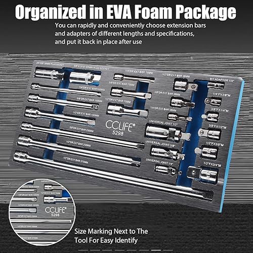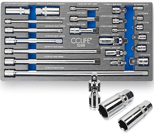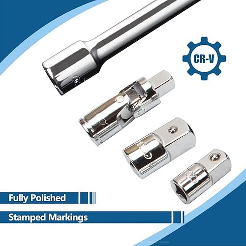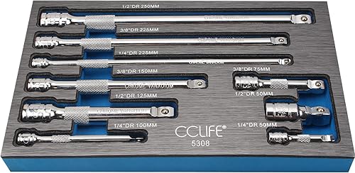 CCLIFE 9tlg Steckschlüssel Kipp Verlängerung 1/4 3/8 1/2 Zoll Ratsche Knarre Kippverlängerung Satz mit Rändelung