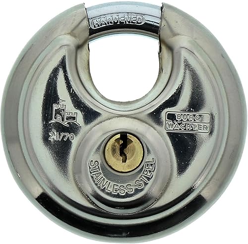 Burg-Wächter Rundbügelschloss, Vorhängeschloss mit Schlüssel, 10 mm Bügelstärke, Edelstahlkorpus, Messingschloss, Kneifschutz, Circle 21 70 SB