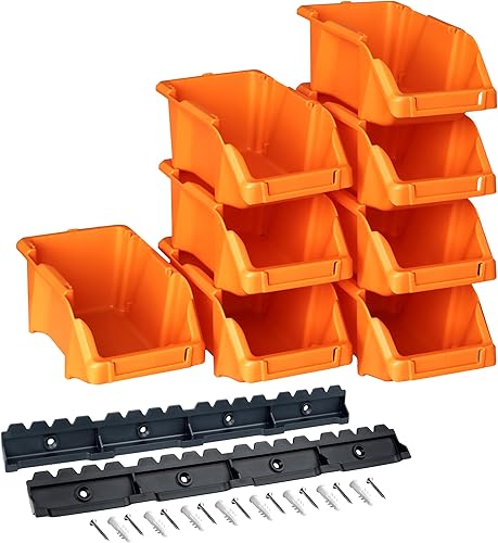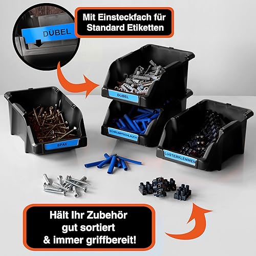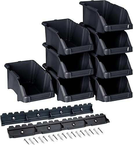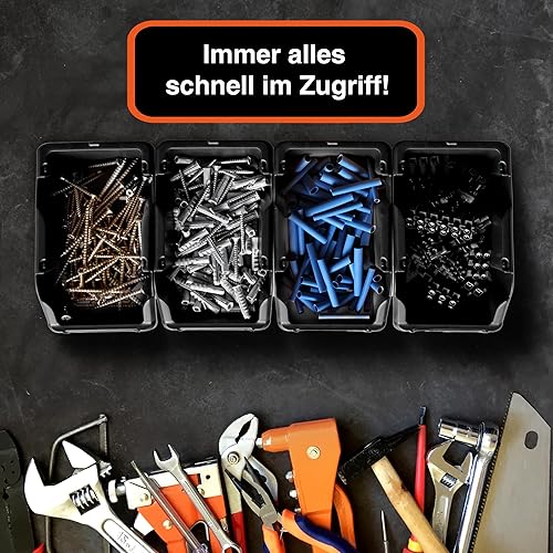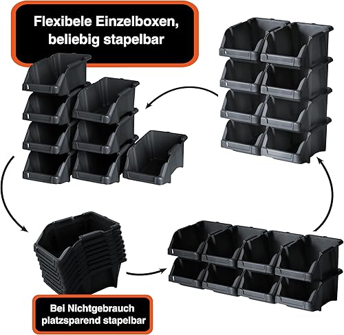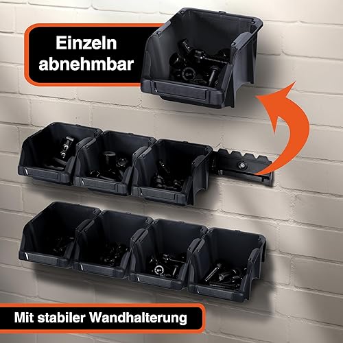 YPC Stapelboxen Set - Grau 8 Stück - Sichtlagerboxen 16x9x7cm mit Wandhalterung für Werkstatt & Garage zur Aufbewahrung von Schrauben & Werkzeug
