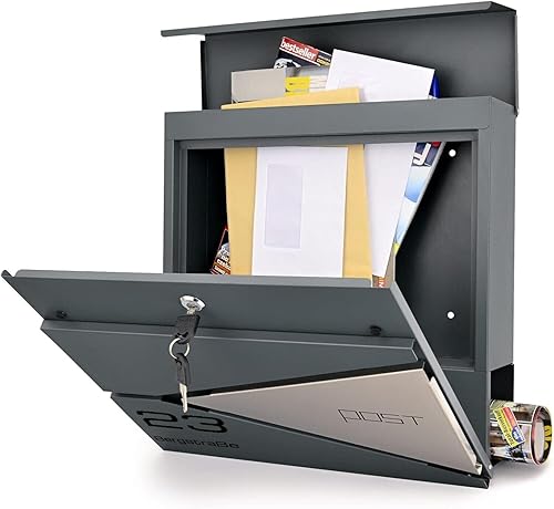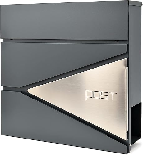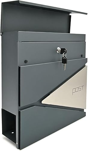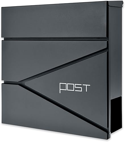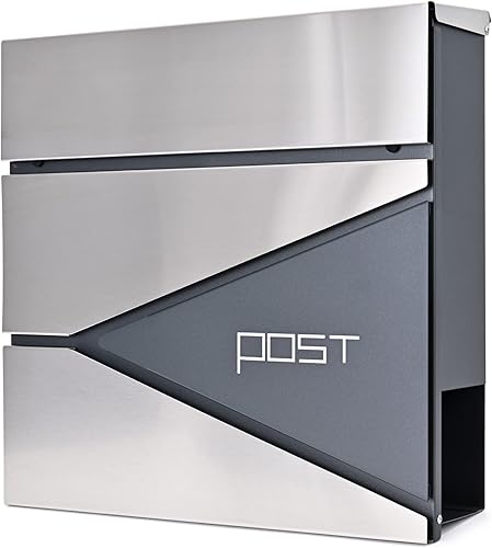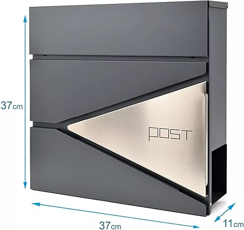 Verda Briefkasten mit Zeitungsfach, Postkasten Designer Wandbriefkasten mit Edelstahl, Schloss unter dem Deckel versteckt, 2X Schlüsseln Zeitungsrolle, modern (SN3693-1)