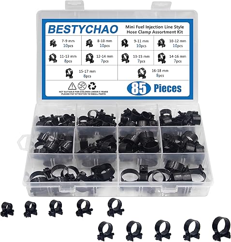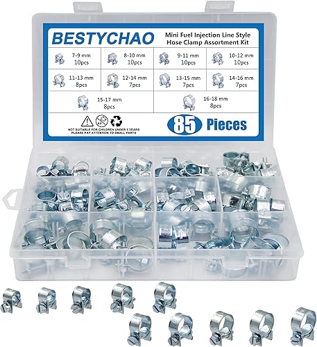 BESTYCHAO Mini Einspritzschlauchschellen Verzinkt 85 Stück 7-18mm Bereich Einstellbare Schlauchschellen Sortiment Benzinrohrschellen für Autos, Traktoren und andere Bereiche (Silber)