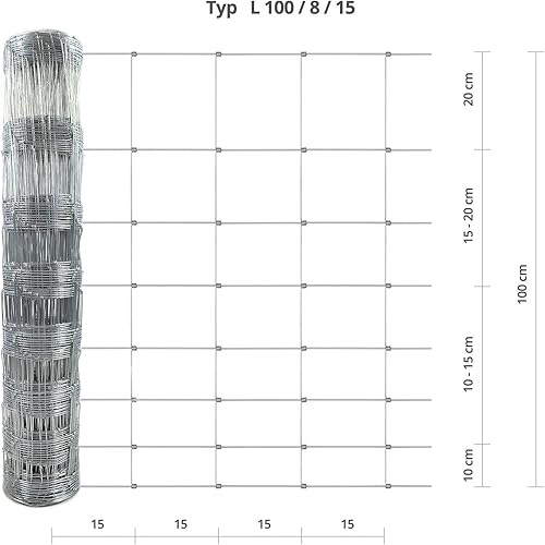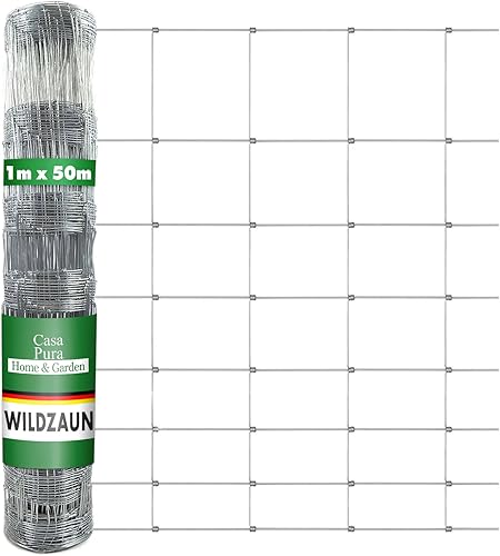 casa pura Wildzaun verzinkt in Fachhandel-Qualität | Verschiedene Höhen je nach Tierart | 50 m lang | Weidezaun Forstzaun Tierzaun Drahtzaun Gitterzaun Drahtgeflecht (100 cm x 50 m)
