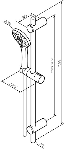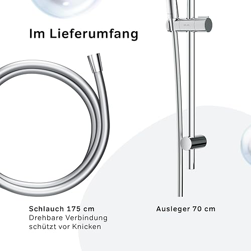 Duschset mit Brausestange ohne Armatur, Duschbrause mit Schlauch und Halterung, Duschstange mit Handbrause, Duschsäule, Duschkopf mit 3 Strahlarten, AM.PM F01XA000 X-Joy, Chrom