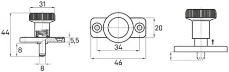 KINETIK MSystem - Rastbolzen mit Anschraubflansch/Anschraubplatte Federbolzen Arretierbolzen Dimension H44 / L46 / B20