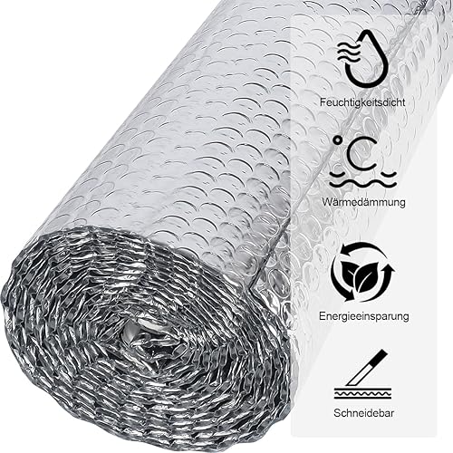 Doppelseitige Aluminiumfolie Isolierung 150 cm X 2.5 m,3mm Dicke Isolierfolie Dämmfolie Reflexionsfolie,Alu-Luftpolsterfolie Heizkörper Isolierung für Fahrzeuge, Dächer, Fenster, Rohre usw