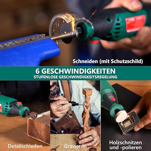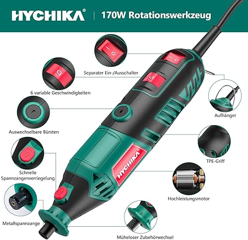 HYCHIKA 170W Rotationswerkzeug, Rotationswerkzeugsatz mit variabler Drehzahl und Flexwelle, 173-teiliges Zubehörset und Multiwerkzeug mit 8000-35000 U/min, perfekt zum Schneiden, Detailschleifen