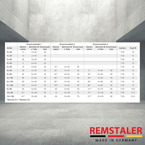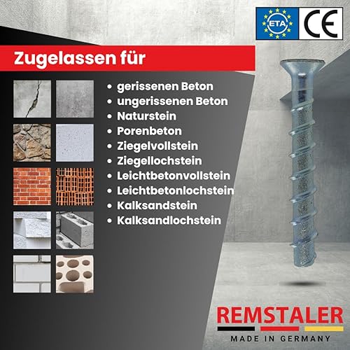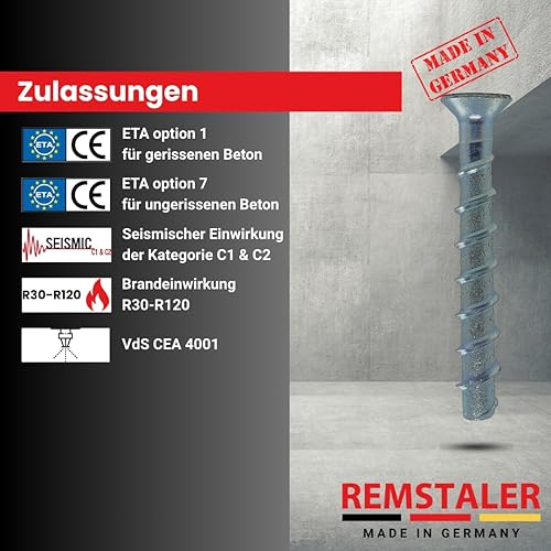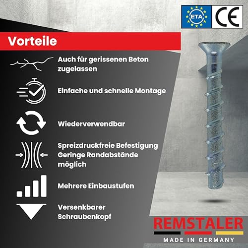 10x Remstaler BETONSCHRAUBE Senkkopf mit Torx-Antrieb | Ø5 - Ø10 | ETA Zulassung | made in GERMANY | Schraubanker (6x80)