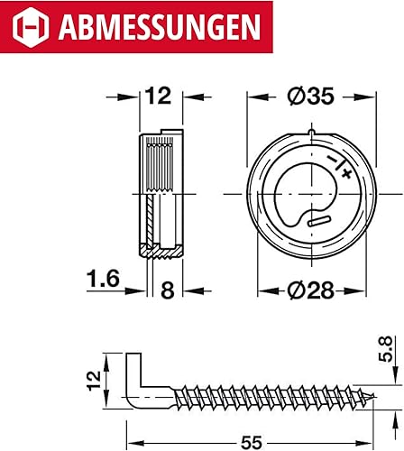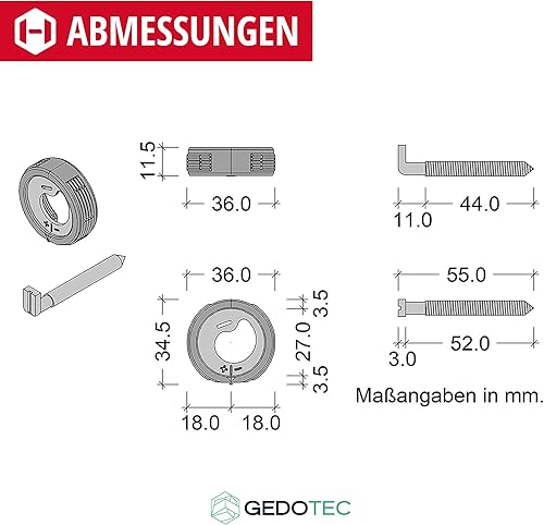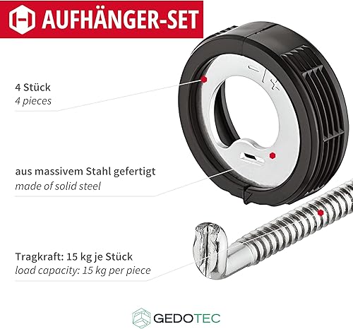 Gedotec Schraubhaken Stahl verzinkt | 4 Stück Schrankhalter rostfrei | Länge: 55 mm | Schrankaufhänger stabil | Schrank-Aufhängung höhen-verstellbar | Schrankhalter rund mit Schrauben