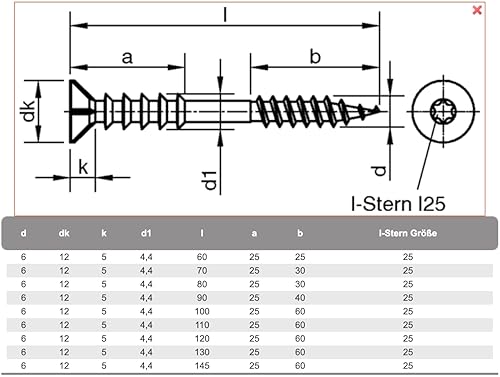 Justierschrauben Torx JD79 Dresselhaus - Distanzschrauben mit Senkkopf - inkl. T25 Bit - hell verzinkt (100, 6x60 mm)