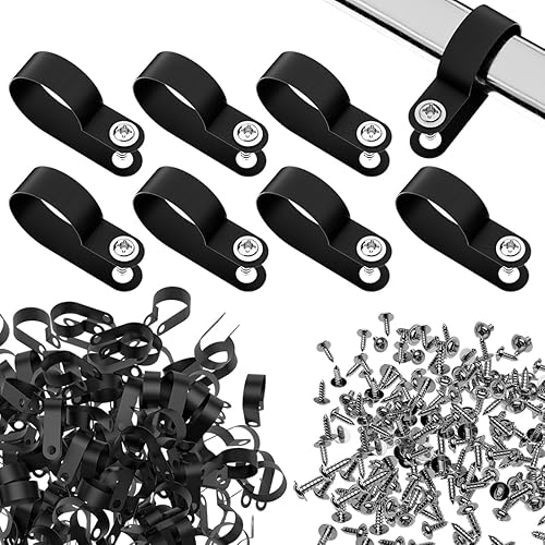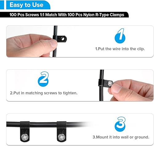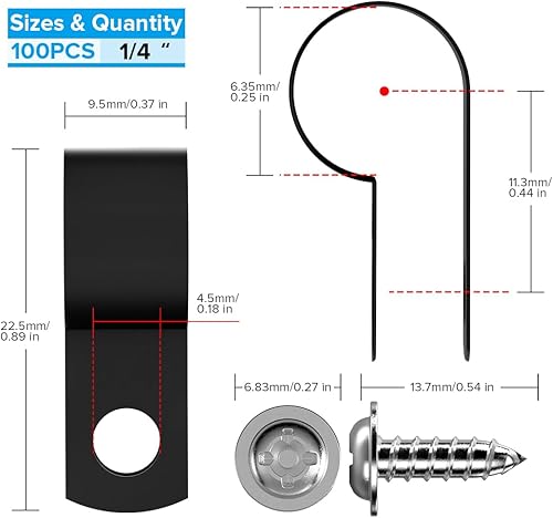 BTF-LIGHTING 100pcs Schwarz 1/4 Zoll R-Typ Nylon Kunststoff Kabelklammern mit Edelstahl-Schrauben für den Innenbereich im Freien elektrische Kabelklemme Veranstalter Kabelmanagement