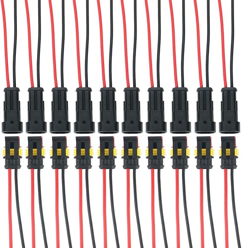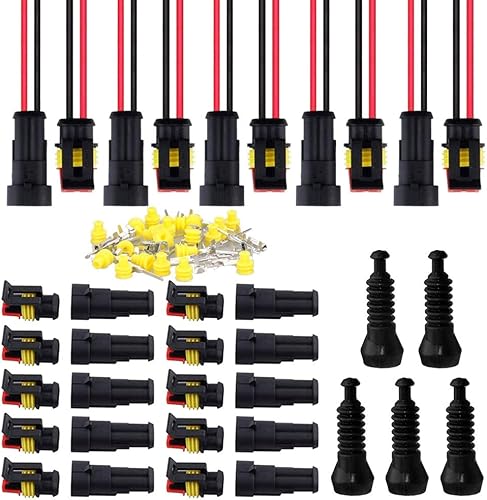 GTIWUNG 20 Set Kabel Steckverbinder Stecker, Wasserdicht Schnellverbinder, Auto Wasserdicht Elektrische Stecker mit Draht, Verbindungsstecker Wasserdicht für KFZ/LKW/Motorrad(2 Polig×10, 1 Polig×10)