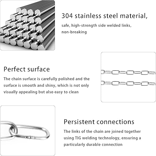 Volumoon Edelstahlkette Starke, 8 meter 1.2mm Kette Edelstahl 304 Hochbelastbare Geschweißte Kettenglieder zum Aufhängen von Zäunen, Stahlkette Schwenkkette Kette aus Stahl, Maximale Belastung 10KG