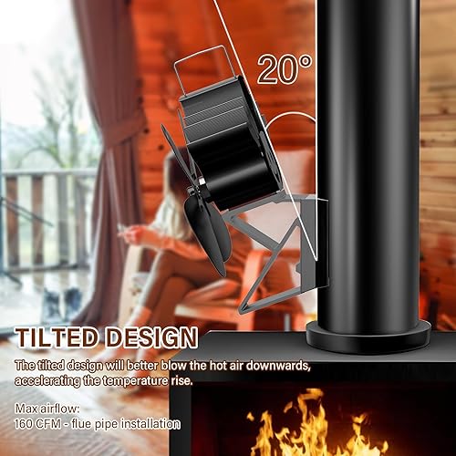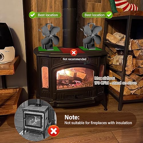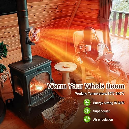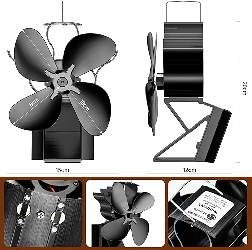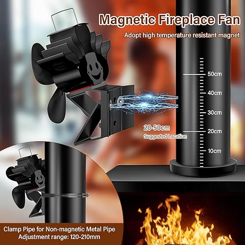 Aissom 2 in 1 Kaminventilator Magnetisch, 4 Blatt Ofenventilator Magnetisc, Ofenventilator Ohne Strom Leiser Betrieb für Kaminrohr/Kaminofen/Kamin/Ofen/Holz/Ofenrohr, mit 1 Ersatzring