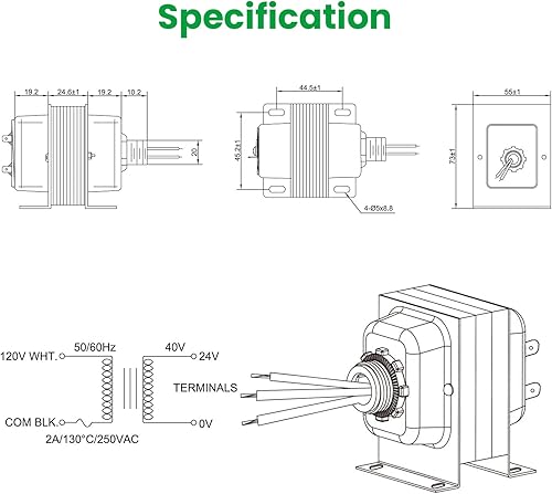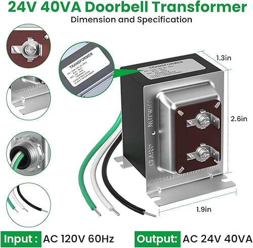 Auspow Türklingel Transformator 24V 40VA für Ring Video Türklingeln, fest verdrahtete Türklingel Transformator Netzteil, kompatibel mit Ring, Nest Hello, Wyze und Eufy Video Doorbells
