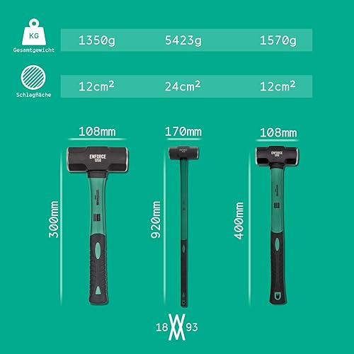 Langer Fäustel 3LB mit 2K Fiberglasstiel 30cm aus der ENFORCE Serie von WIESEMANN 1893 I Hammer Kopf geschmiedet & induktiv gehärtet I 81253