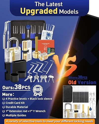 Eventronic 38+4 Stück Lockpicking Set, [2024 Schwierigkeit Upgrade & Geschenk Ideal] Dietrich Set mit 4 Transparente Schlösser und 4 Schwarze Verschlusshülsen, Handbuch für Anfänger & Profisrleicht