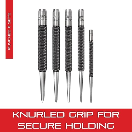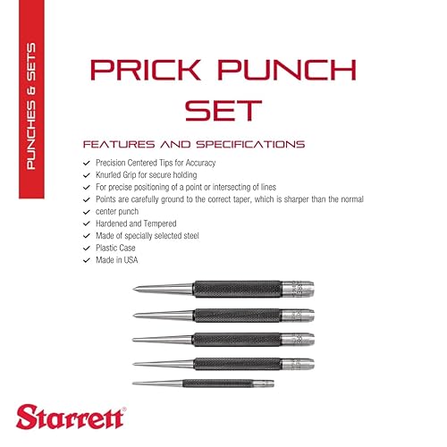 Starrett S816PC 5-teiliges Stanzset, 3 Stechlocher mit 5/64'-5/32' Durchmesser und 2 Körner mit 1/16' und 3/32' Durchmesser, im Kunststoffkoffer