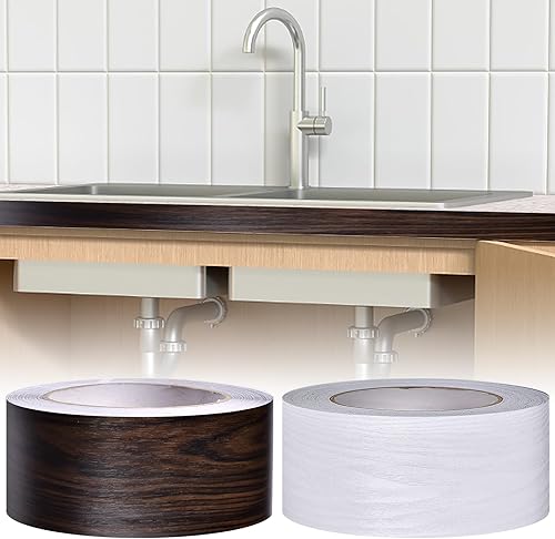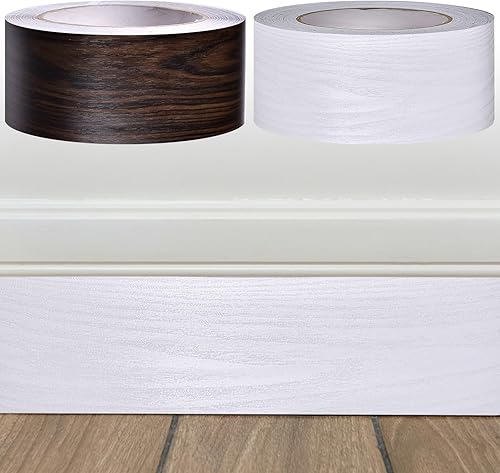 maxant Holzmaserung-Tapetenbordüre, 2 Rollen 5 cm x 10 m, selbstklebender PVC-Aufkleber, abziehen und aufkleben, dekorative Bordüre für Wohnzimmer, Badezimmer, Küche (weiße Holzmaserung)