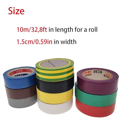 TSKDKIT 10 Stück 10m Isolierband Farbiges Klebeband 15mm Isolierbänder Klebeband Bunt Isolieren Bänder Klebebänder zum Basteln