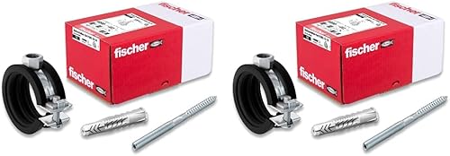 Fischer Rohrschellen-Set FGRS 32-37 gvz, Rohrschellen-Set mit 30 Teilen: 10 Stk. Gelenkrohrschellen FGRS 32-37,10 Stk. Stockschraube STST8x80,10 Stk. Universaldübel UX10x60, Art-Nr. 547059, schwarz